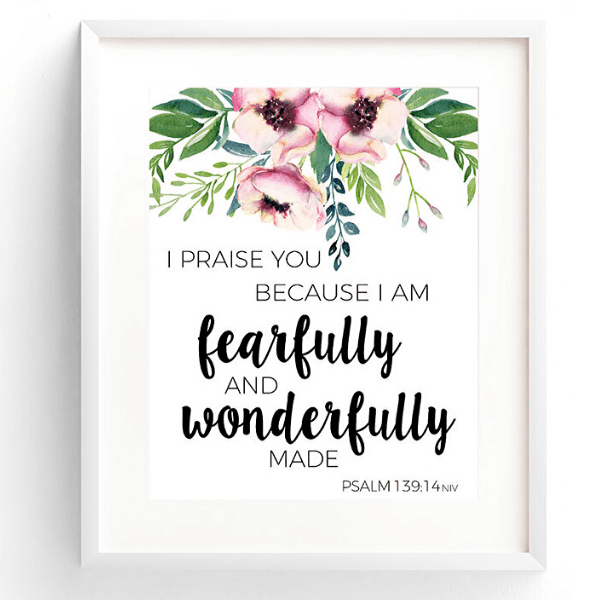 Fearfully & Wonderfully Made Bible Verse Watercolor Art Print